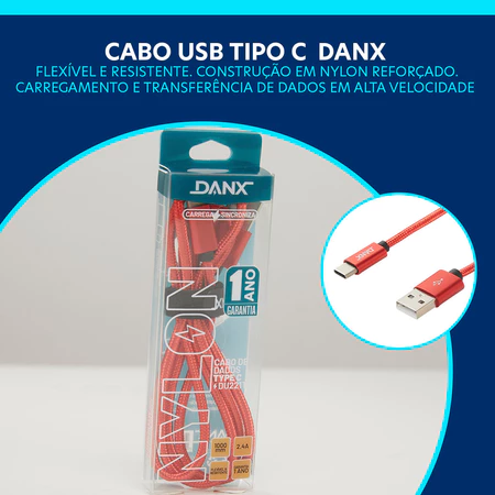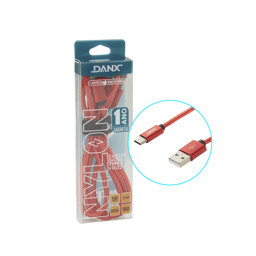 Cabo Tipo C Danx DU221M V8 1M Reforçado em Nylon – Carregamento Rápido e Transferência de Dados