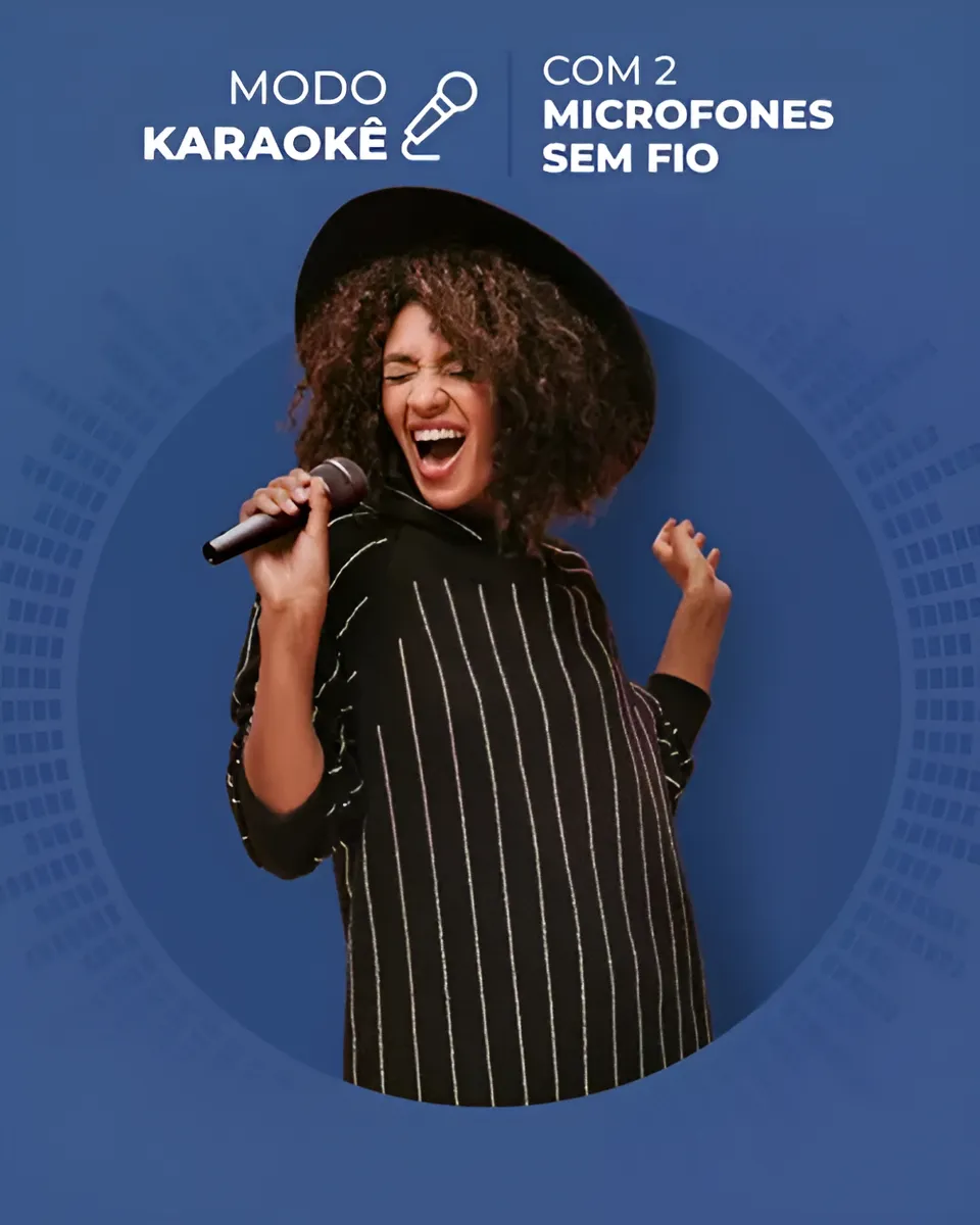 Um dos grandes diferenciais da X50 é que ela já vem com microfones, pronta para ser usada como karaokê. Isso deixa qualquer ambiente mais animado — seja um churrasco, festa, reunião de família ou até uma apresentação improvisada. E o melhor: o som dela segura muito bem a voz, sem microfonia exagerada.