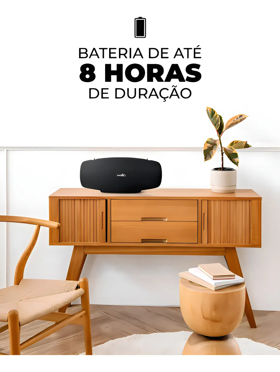 - Bateria de longa duração (até 8 horas de reprodução contínua)