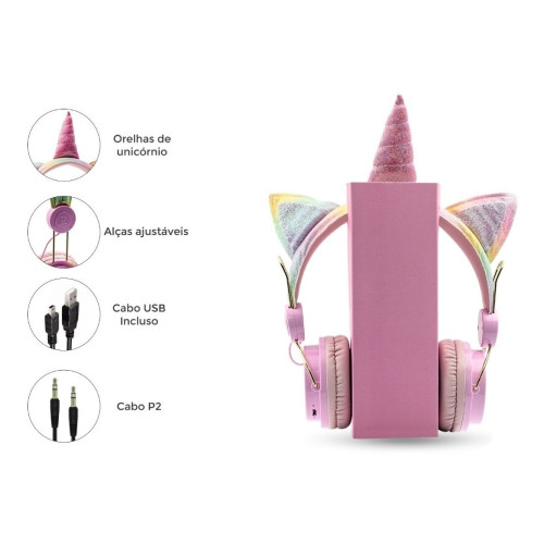 Transforme sua experiência musical com o Hamston EJ-052: estrutura confortável com almofadas suaves, arcos ajustáveis e acabamento decorativo inspirado em unicórnio com luzes LED que brilham em RGB. Compatível com dispositivos Bluetooth, também pode ser conectado via entrada 3,5 mm quando quiser. Perfeito para quem quer juntar estilo e som de qualidade em chamadas, jogos, músicas ou para uso diário. Compre já e encante-se toda vez que usar!