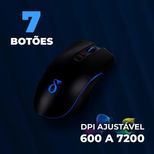 7 botões programáveis, otimizando comandos rápidos em jogos.