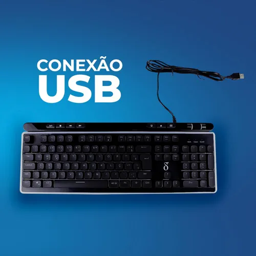 Botões de atalho multimídia e controle de volume dedicado para praticidade.