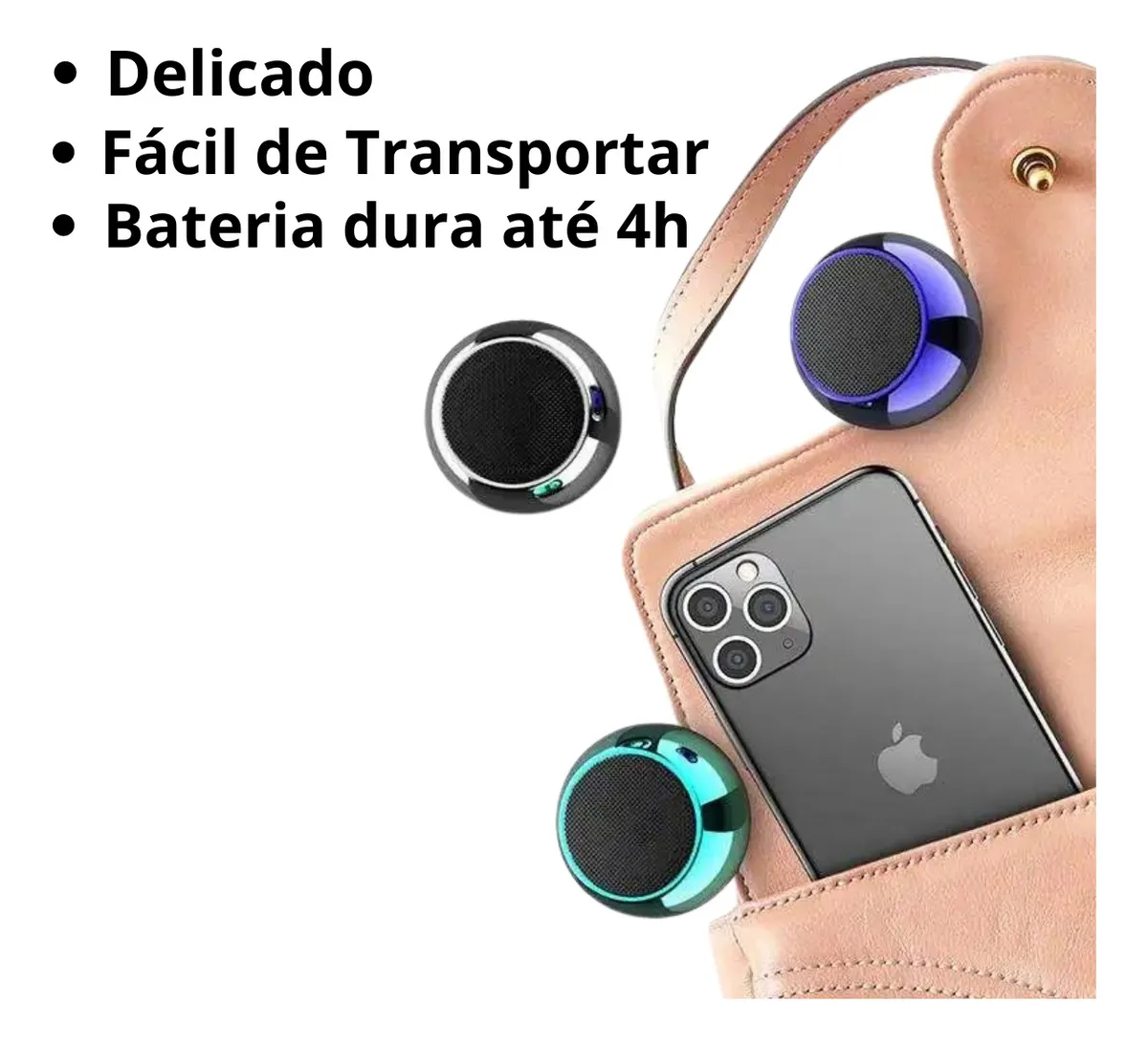 Surpreenda-se com a potência dessa mini caixa de som Bluetooth de 3W! Compacta e leve, é perfeita para levar em qualquer lugar: churrascos, pescarias, pedaladas ou até para usar no quarto. Apesar do tamanho reduzido, oferece áudio amplificado e nítido, com bateria recarregável que garante até 4 horas de reprodução contínua.